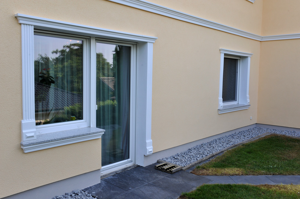 erhalten. Nun kann das Außenstuckelement ein geputzt und mit den üblichen Fassadenfarben 2x gestrichen