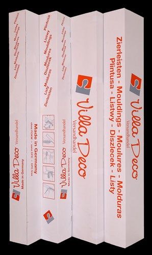 Damit die Ware unversehrt bei Ihnen ankommt, werden die Leisten in extra dafür gefertigten , großen und kleinen 2 Meter langen Karton sicher verpackt.