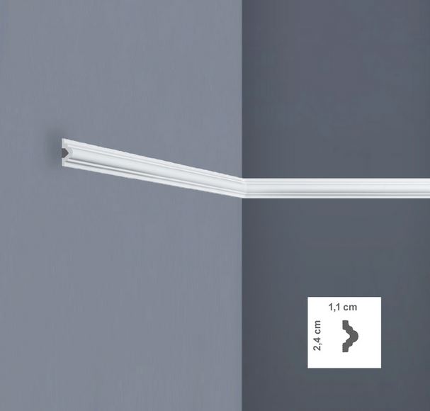 Stuckleiste"24 P" Breite 24mm Höhe 11mm(Leistenlänge von 200 cm) - Die modern geformte Leiste ist zeitlos und schafft durch ihr Design eine besondere Raumatmosphäre. Der gesamte Raum erhält eine Aufwertung. Sehr hartes Material - besonders geeignet für den stoßgefährdeten Bereich "härter wie Holz"