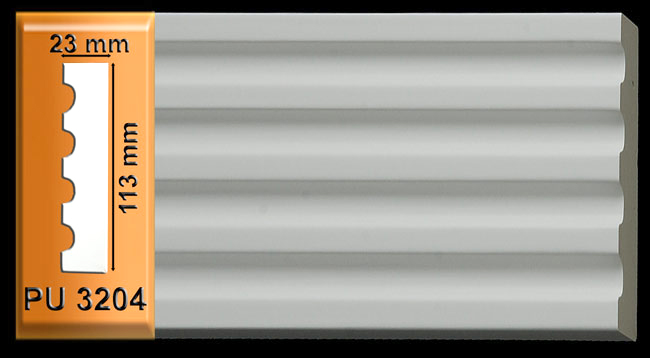 Dekorelement Pilaster Mittelteil "PU 3204" Maße 113x23mm (Mittelteil ist 200cm lang / Preis gilt pro Meter) kann überall als Dekorelement eingesetzt werden. Leicht zu verarbeiten. Originalfarbe "altweis" . Wenn sauber verarbeit wird muss es nicht gestrichen werden. (flaches Dekorelement für Montage auf der Wand - keine frei stehende Säule)